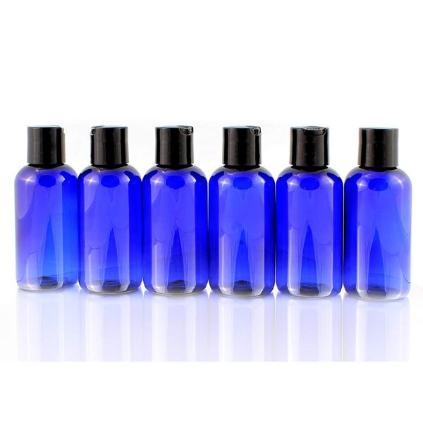 multi usage plastic cosmetic bottles , blue bottle with black cap
