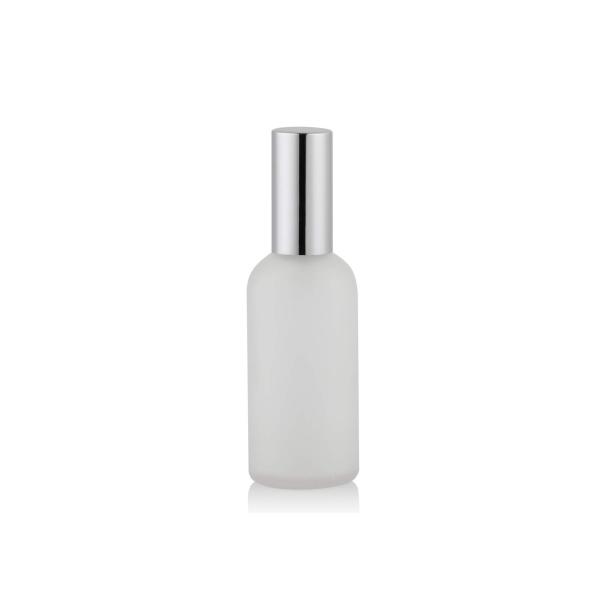 Aluminum mist sprayer and full caps and plastic tube and forsted clear glass bottle.